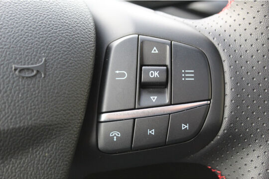 U geniet nog meer van het rijden met uw Ford omdat u wordt beschermd door intelligente veiligheidssystemen. Dat de auto steeds meer taken van de bestuurder overneemt, merkt u bijvoorbeeld aan het systeem voor verkeersbord-detectie in deze Ford. Met het Lane-keeping systeem gaat u nooit onbedoeld over de streep. In een noodsituatie waarschuwt forward collision warning bij een dreigende aanrijding met een voorligger. Verder is deze auto uitgerust met dodehoekdetectie, hill hold functie, vermoeidheidsherkenning, autonoom remsysteem en bandenspanningcontrolesysteem.