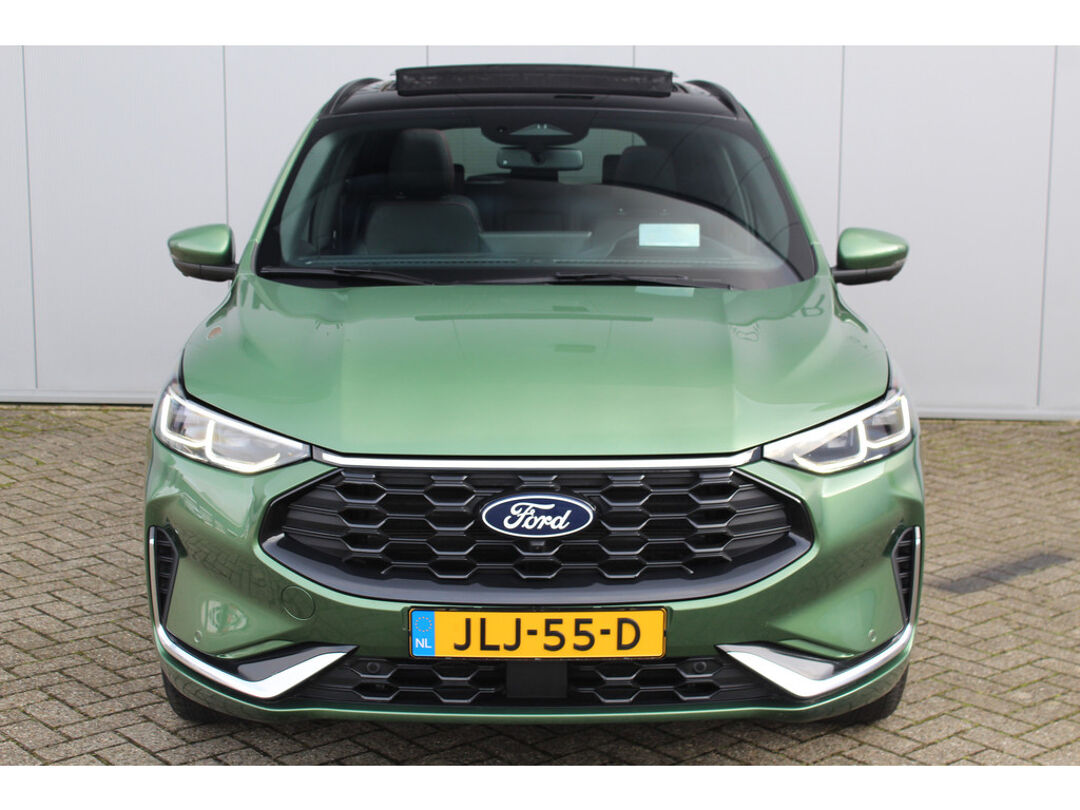 Uitmuntende prestaties, dynamische rijeigenschappen en bakken vol met rijplezier, deze Ford Kuga levert het allemaal. Hij is van het bouwjaar 2025 en heeft slechts 20.500km gelopen. Deze dealeronderhouden auto is van de eerste eigenaar. De aandrijving van deze Ford wordt verzorgd door een viercilinder benzinemotor en een automatische transmissie. U past de stoelen moeiteloos aan, ze zijn elektrisch in te stellen en hebben bovendien een geheugen. Een praktische extra is de elektrisch bedienbare achterklep die opent en sluit met een druk op de knop. Ook 18 inch lichtmetalen velgen, LED koplampen, geluidsisolerende ramen, zwarte hemelbekleding, in delen neerklapbare achterbank en LED-achterlichten horen tot de voorzieningen op deze auto. De slimme lay-out van het digitale dashboard zorgt voor een uitstekend overzicht onderweg. De functie van de 360 graden camera in deze auto is om u een totaaloverzicht van de omgeving te geven, ongeacht hoe smal de straat of parkeerplek is. Adaptive cruise control houdt de ingestelde snelheid vast en houdt afstand tot het voertuig voor u. De ingebouwde Connected Services vertellen u via de app alles over de status van de auto. Locatie, onderhoudsstatus, brandstofpeil en nog veel meer! Voor een krachtige en natuurlijke geluidsweergave zorgt het high performance audiosysteem. U bent in deze Ford ook voorzien van dashboard met spraakbediening, full map navigatiesysteem, WIFI-hotspot, kruisend verkeer detectie, dual zone automatische airconditioning en draadloos opladen. In deze auto zijn verschillende technologieën aanwezig die voor u het verkeer en de omgeving in de gaten houden en die desnoods ook kunnen remmen of bijsturen. Belangrijk voor uw veiligheid en die van uw passagiers is de verkeersbord-detectie in deze auto. Het Lane-keeping systeem zorgt dat u mooi binnen de lijntjes blijft. Ongemerkt buiten de rijstrook komen is er niet meer bij. Het forward collision warning-systeem berekent via een sensor de afstand tot het verkeer vóór u en komt in actie als er gevaar bestaat van een botsing. De veiligheid van deze auto wordt verder verhoogd door dodehoekdetectie, hill hold functie, vermoeidheidsherkenning, autonoom remsysteem en bandenspanningcontrolesysteem. U bent van harte welkom om deze auto te komen bekijken, neemt u snel contact met ons op?