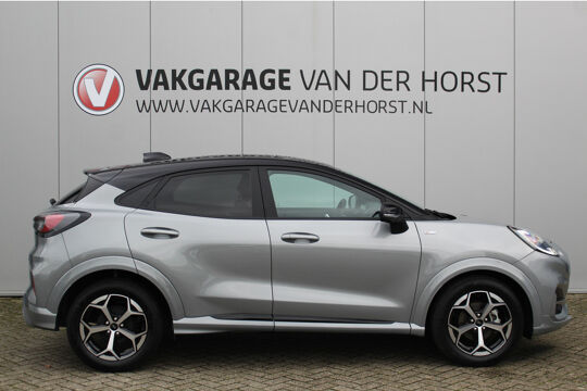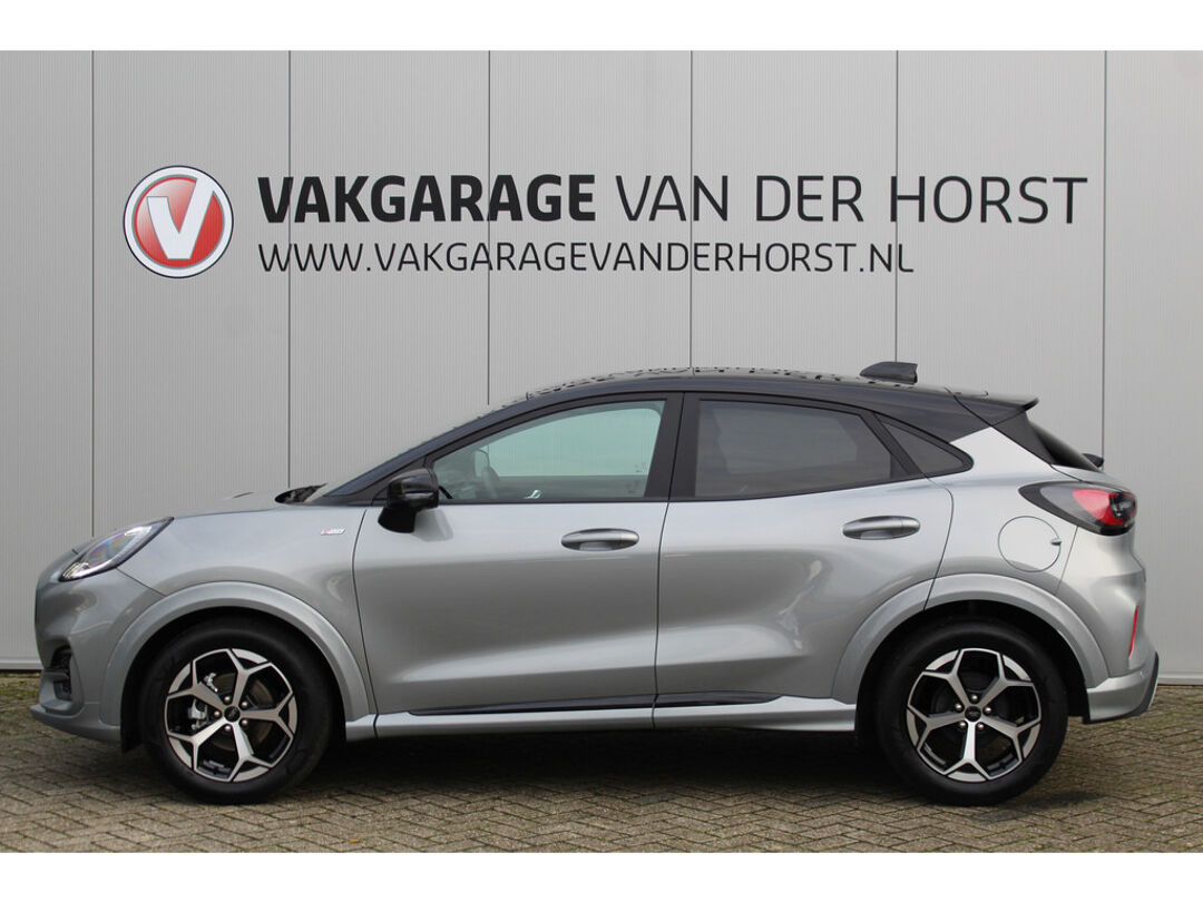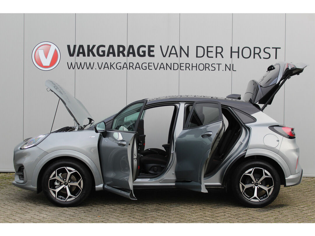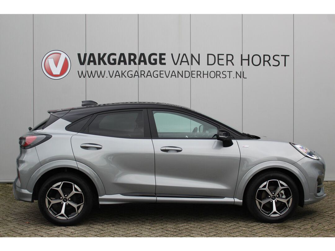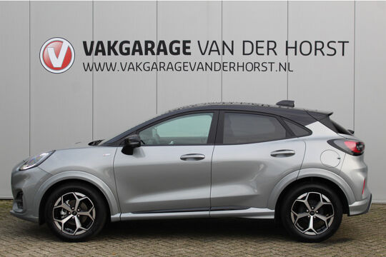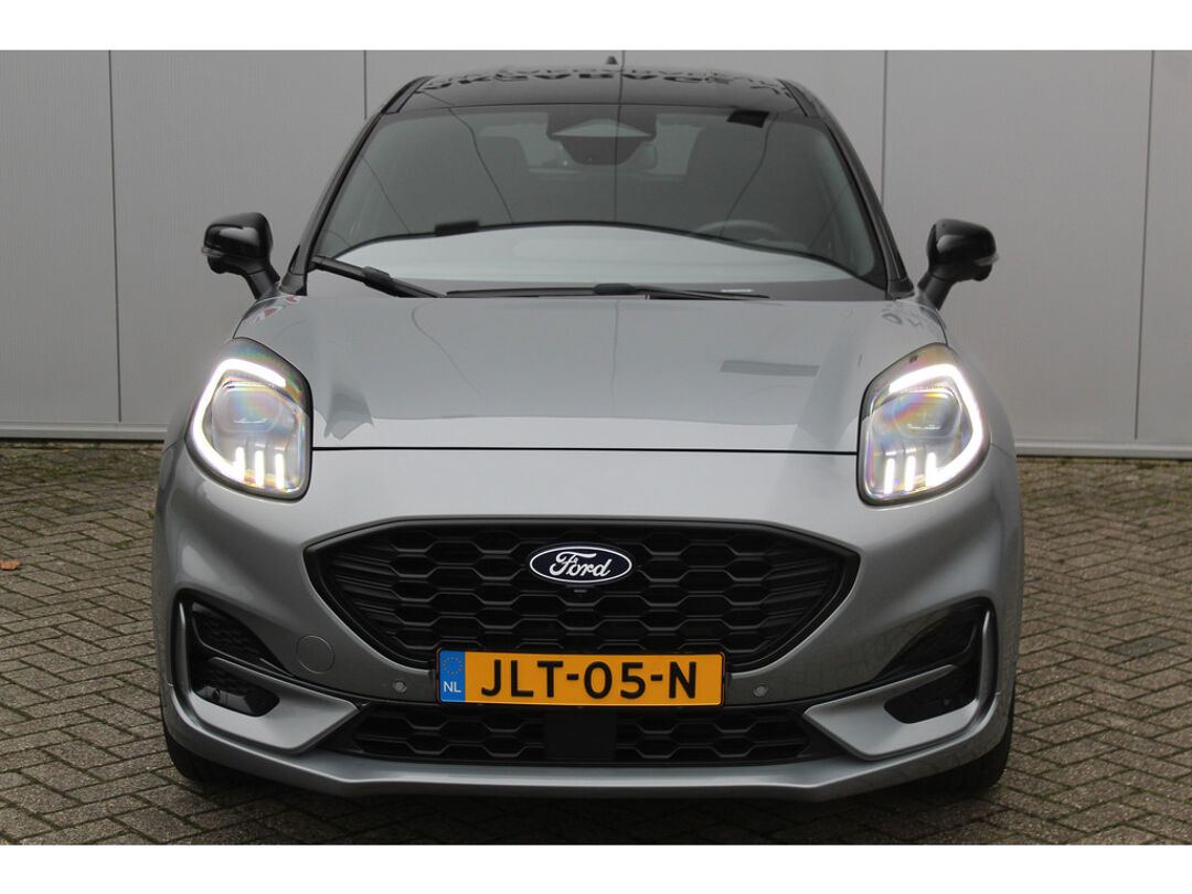 Autojournalisten zijn het er unaniem over eens. De Ford Puma behoort tot de best sturende auto's van zijn klasse. Ook deze Puma heeft de uitmuntende rijeigenschappen die u van een Ford mag verwachten. Het is vermeldenswaard dat deze auto maar 9.386 kilometer heeft gereden sinds 2025. De aandrijving van deze Ford wordt verzorgd door een driecilinder benzinemotor en een handgeschakelde zesversnellingsbak. Chauffeur en bijrijder zitten stabiel in de scherpe bochten door de sportstoelen. De uitmonstering van deze auto wordt gecompleteerd door onder meer Full LED koplampen, sportonderstel, donker getint glas achter, in delen neerklapbare achterbank, LED-achterlichten en verstelbare lendensteunen. Met het digitale dashboard heeft u essentiële info in beeld. Altijd, overal. Niets achter deze auto blijft verborgen door de achteruitrijcamera. Een veilig gevoel! U weet altijd hoe de auto eraan toe is dankzij Connected Services. Ook handig voor de garage en de wegenwacht. Even de app uitlezen en klaar! Een goede veiligheidsvoorziening is de spraakbediening en stuurbediening voor belangrijke functies. De auto is natuurlijk voorzien van een full map navigatiesysteem en het audio-installatiesysteem biedt glasheldere geluidskwaliteit dankzij DAB-ontvangst. Het comfort wordt verhoogd door de aanwezige automatische airconditioning. En deze auto heeft ook regensensor, cruise control, automatisch dimmende binnenspiegel, lederen stuur, centrale deurvergrendeling met afstandsbediening en boordcomputer als standaard uitrusting. In de Ford Puma heeft uw veiligheid en die van uw omgeving prioriteit. Bij de veiligheidssystemen van deze Ford hoort ook de verkeersbord-detectie. Die leest tijdens het rijden als het ware met u mee en attendeert u op de significante verkeersborden langs en boven de weg. Deze Ford Puma is ook behulpzaam als het gaat om een rechte koers. Het Lane-keeping systeem signaleert en corrigeert als u onbedoeld de rijstrooklijnen dreigt te overschrijden. Het forward collision warning-systeem berekent via een sensor de afstand tot het verkeer vóór u en komt in actie als er gevaar bestaat van een botsing. Met voorzieningen als brake assist en bandenspanningcontrolesysteem, bent u altijd veilig onderweg. Om deze auto zelf te ervaren, hoeft u alleen maar contact met ons op te nemen. Mailt of belt u ons direct?