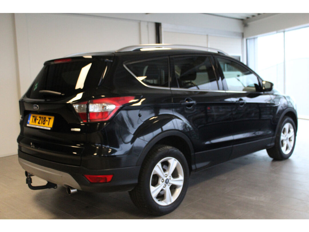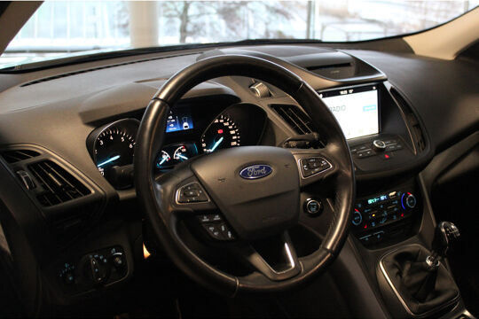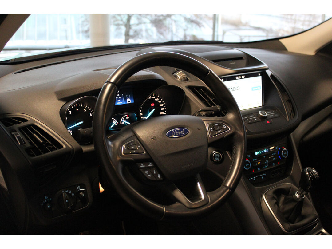 Ford, qua techniek en design geheel met de blik op de toekomst. 'Go Further' zeggen ze. En dat is te zien. Deze goed onderhouden auto is van het bouwjaar 2018. Hij heeft een benzinemotor en een handgeschakelde zesversnellingsbak. Koude start ? Niet met de verwarmbare voorstoelen, verwarmd stuurwiel, tevens is de auto voorzien van voorraamverwarming. Bij de rijke uitrusting horen ook 18" LM wielen, LED-dagrijverlichting, in delen neerklapbare achterbank, verstelbare lendensteunen en snelheidsafhankelijke stuurbekrachtiging. Soepel inparkeren in de krapste parkeervakken. De achteruitrijcamera maakt het mogelijk. In deze auto klinkt uw favoriete muziek nog beter dankzij het high performance audiosysteem. Dankzij electronic climate control is het interieur behaaglijk warm of verfrissend koel. Het luxeniveau in deze Ford is niet alleen gericht op comfort, maar ook op uw veiligheid. Tal van sensoren helpen u om de omgeving in de gaten te houden. De automatisch inschakelbare verlichting zorgt dat automatisch de verlichting wordt ingeschakeld als het donker wordt, wat bijvoorbeeld in tunnels erg handig is. En de regensensor zet de ruitenwissers aan zonder dat u eraan hoeft te denken. Stel de cruise control in op de gewenste snelheid en u rijdt comfortabel en zuinig. Ook dashboard met spraakbediening, full map navigatiesysteem, DAB ontvangst, keyless entry, automatisch dimmende binnenspiegel en lederen stuur horen tot de voorzieningen op deze auto. Zoals u mag verwachten van deze Ford Kuga is hij uitgerust met een reeks aan actieve veiligheidssystemen. Een kortere remweg verkleint de kans op een aanrijding. Brake assist helpt actief mee tijdens een noodstop. Met voorzieningen als hill hold functie en bandenspanningcontrolesysteem, bent u altijd veilig onderweg. Als u nieuwsgierig bent naar deze Ford Kuga, neem dan snel contact met ons op.